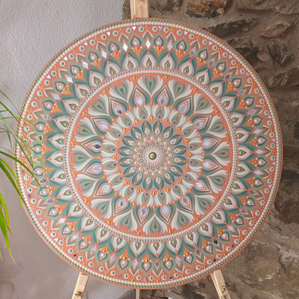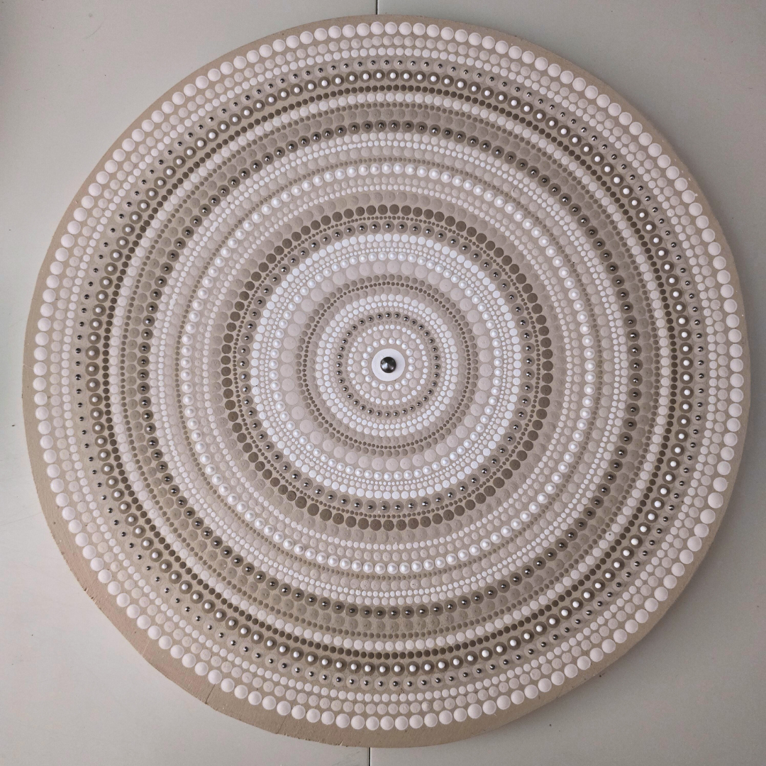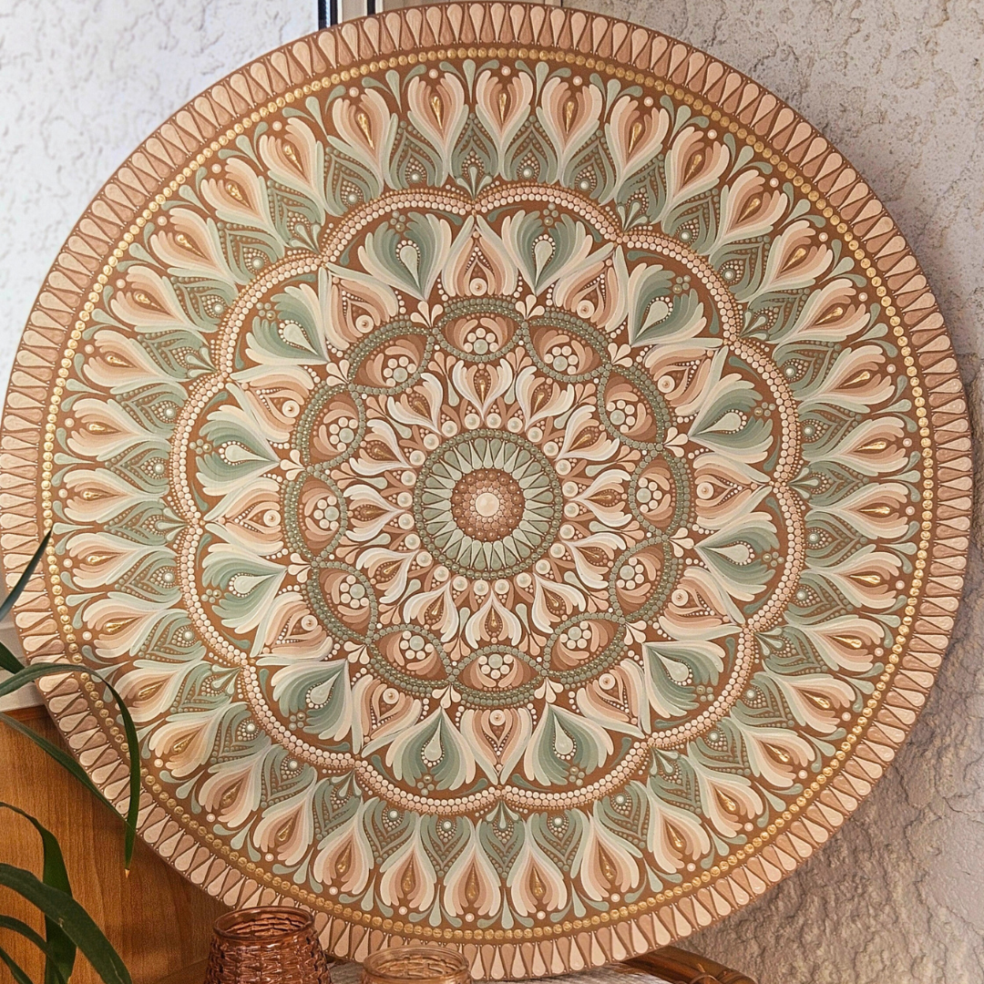 Ce tableau est la symphonie d’une teinte terreuse, capturant l’immensité écrasante et la beauté austère du désert. Quelques touffes d’herbes sèches parsèment le paysage, témoignant d’une vie tenace malgré les conditions extrêmes.